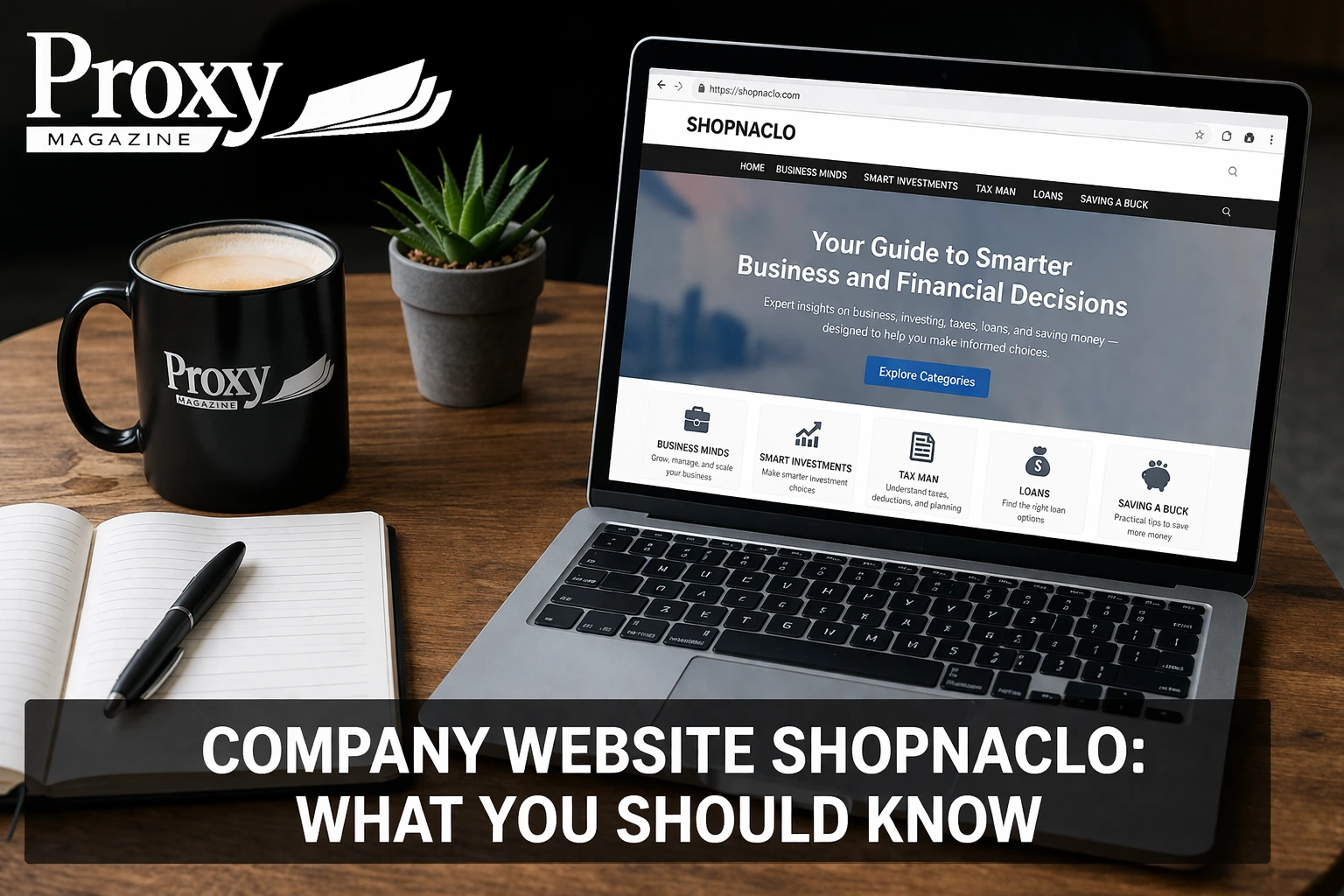 Based on its current homepage, Shopnaclo is a content-driven website that publishes articles related to business and finance. The main navigation includes categories such as Business Minds, Smart Investments, Tax Man, Loans, and Saving A Buck. The homepage also says its goal is to help readers make informed financial decisions.